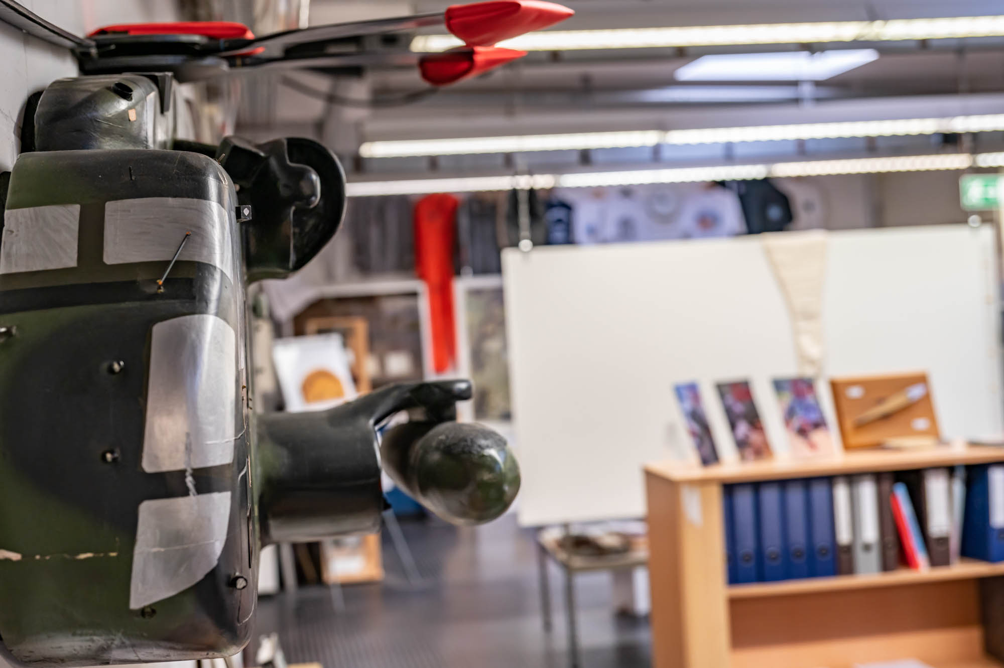 Mit diesem Votum konnte der Vertrag abgeschlossen und mit der Arbeit begonnen werden. Positive Überraschungen gab es auch, die Renovierung wurde vom BwDLZ übernommen. Da es sich bei den Räumen um die ehemalige Ausbildungswerkstatt für Luftfahrzeugmechaniker handelt, in der vorher Maschinen zur Metallbearbeitung betrieben wurden, kann man sich den Zustand ungefähr vorstellen.